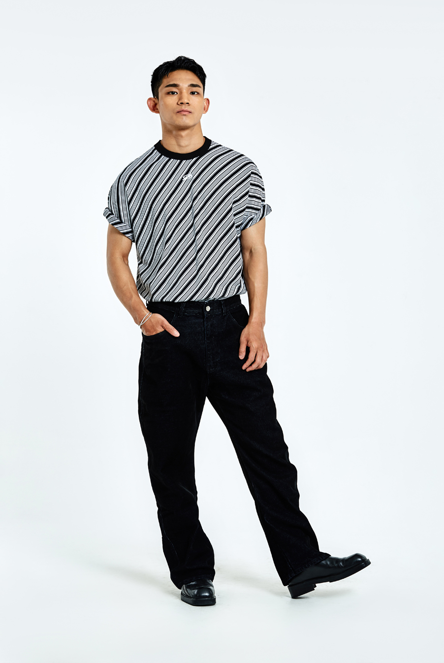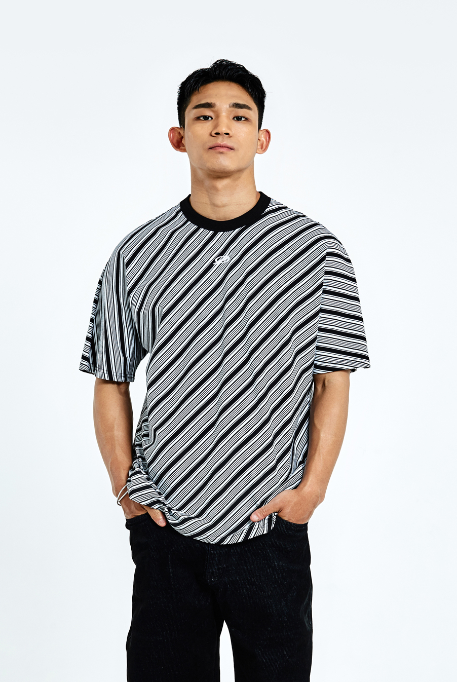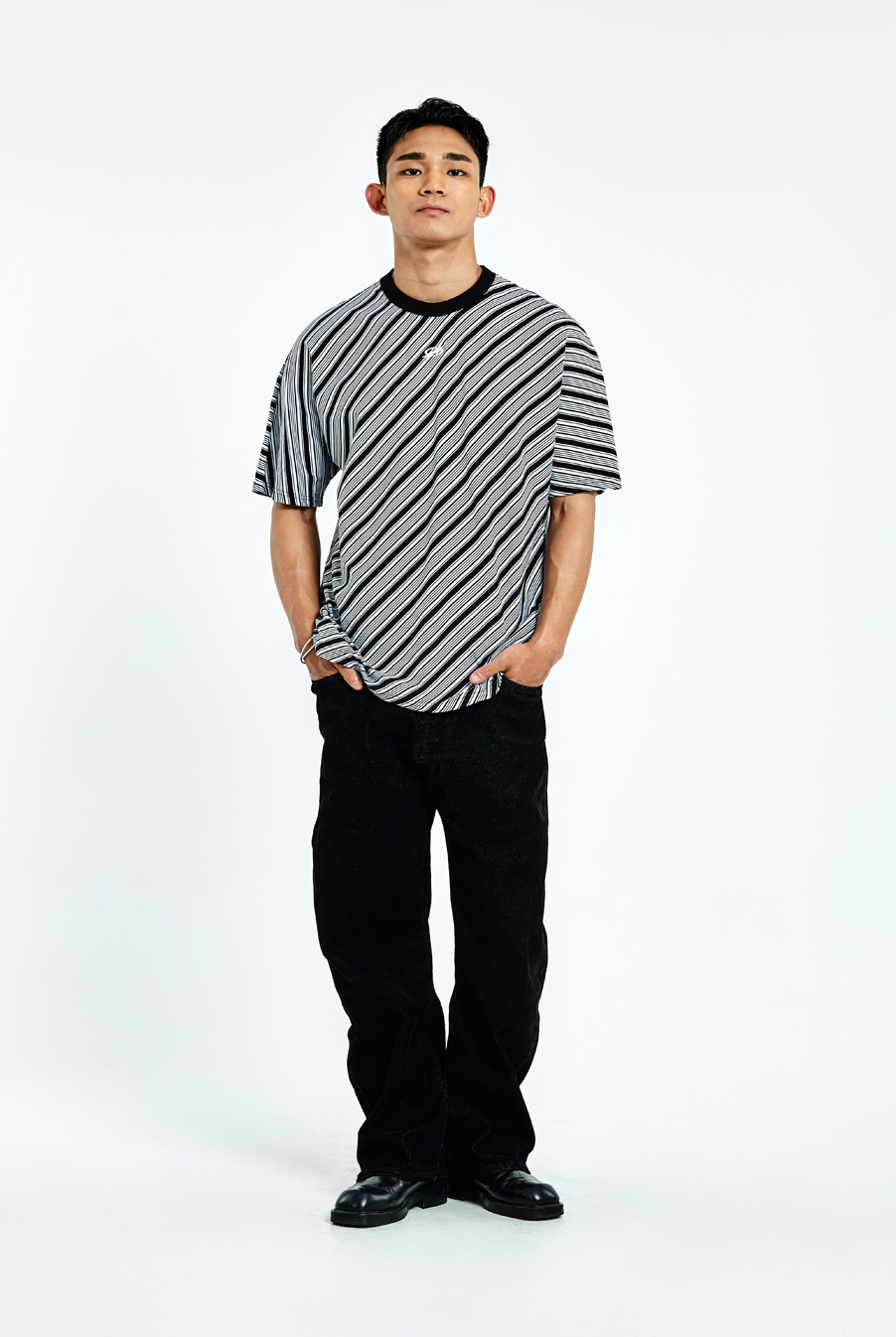 비대칭 사선 라인 디테일 적용