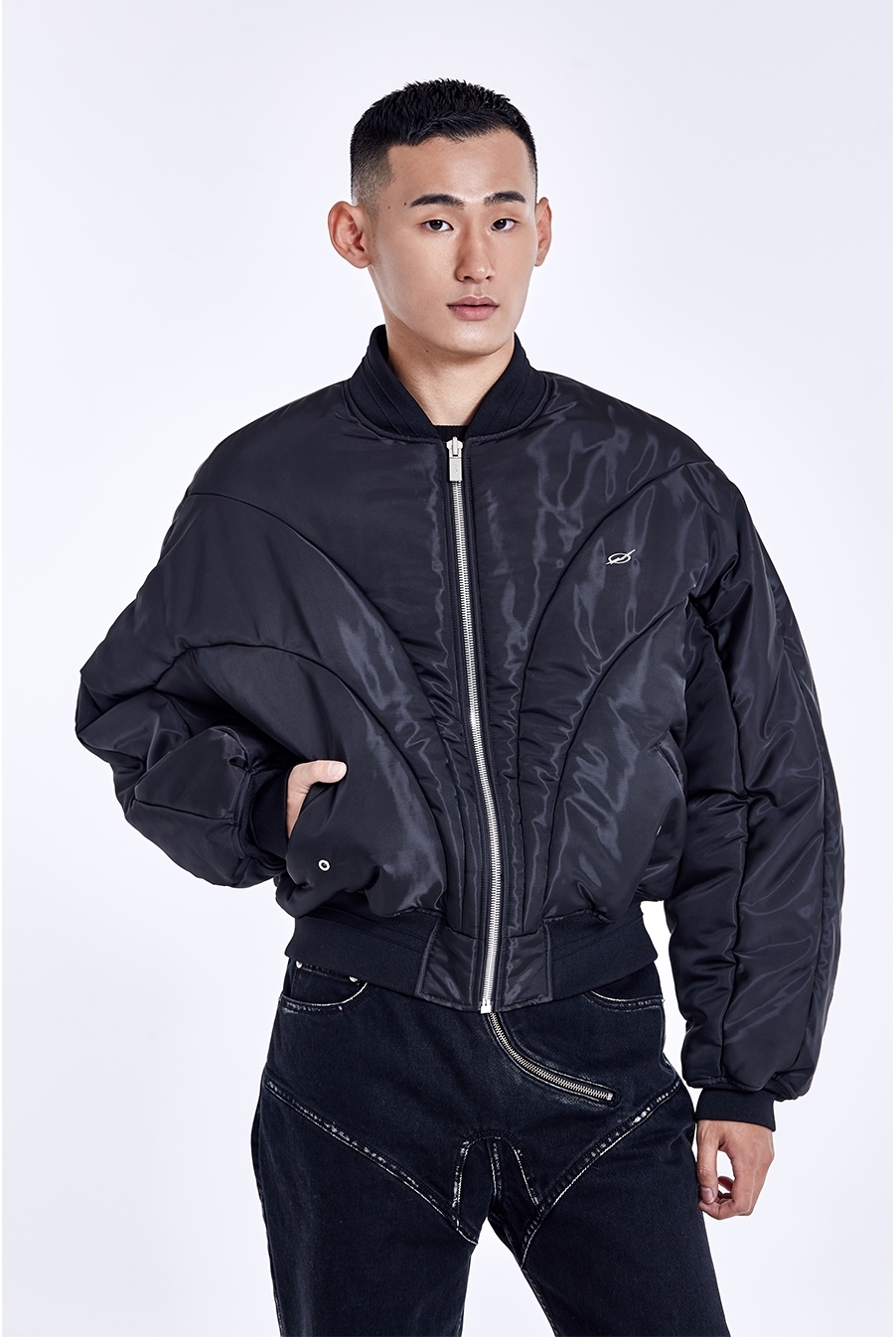 寬大版型 ma-1 外套 - 黑色