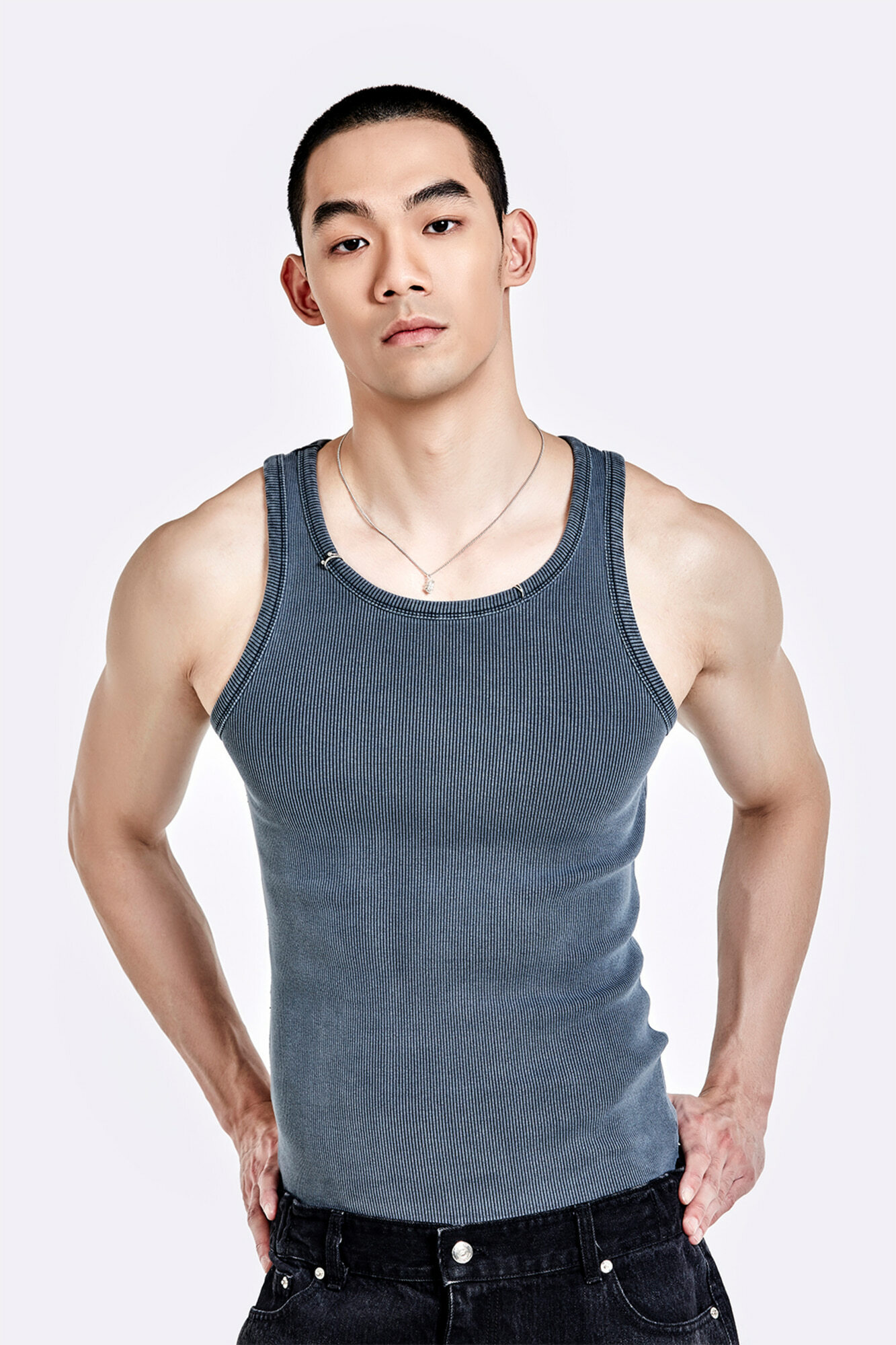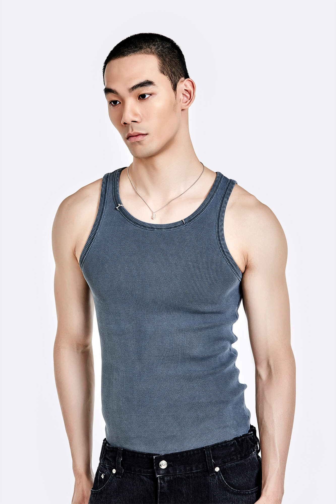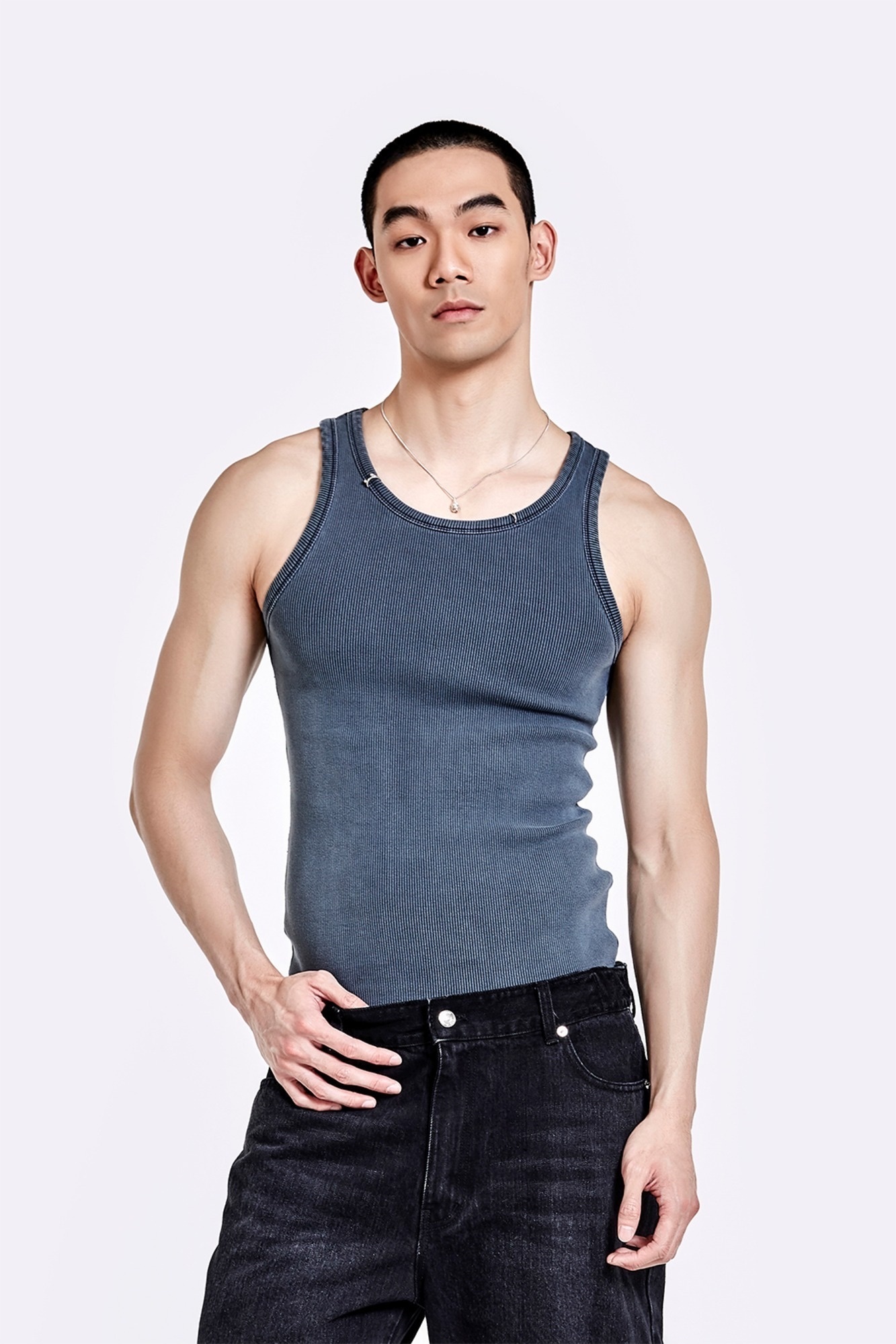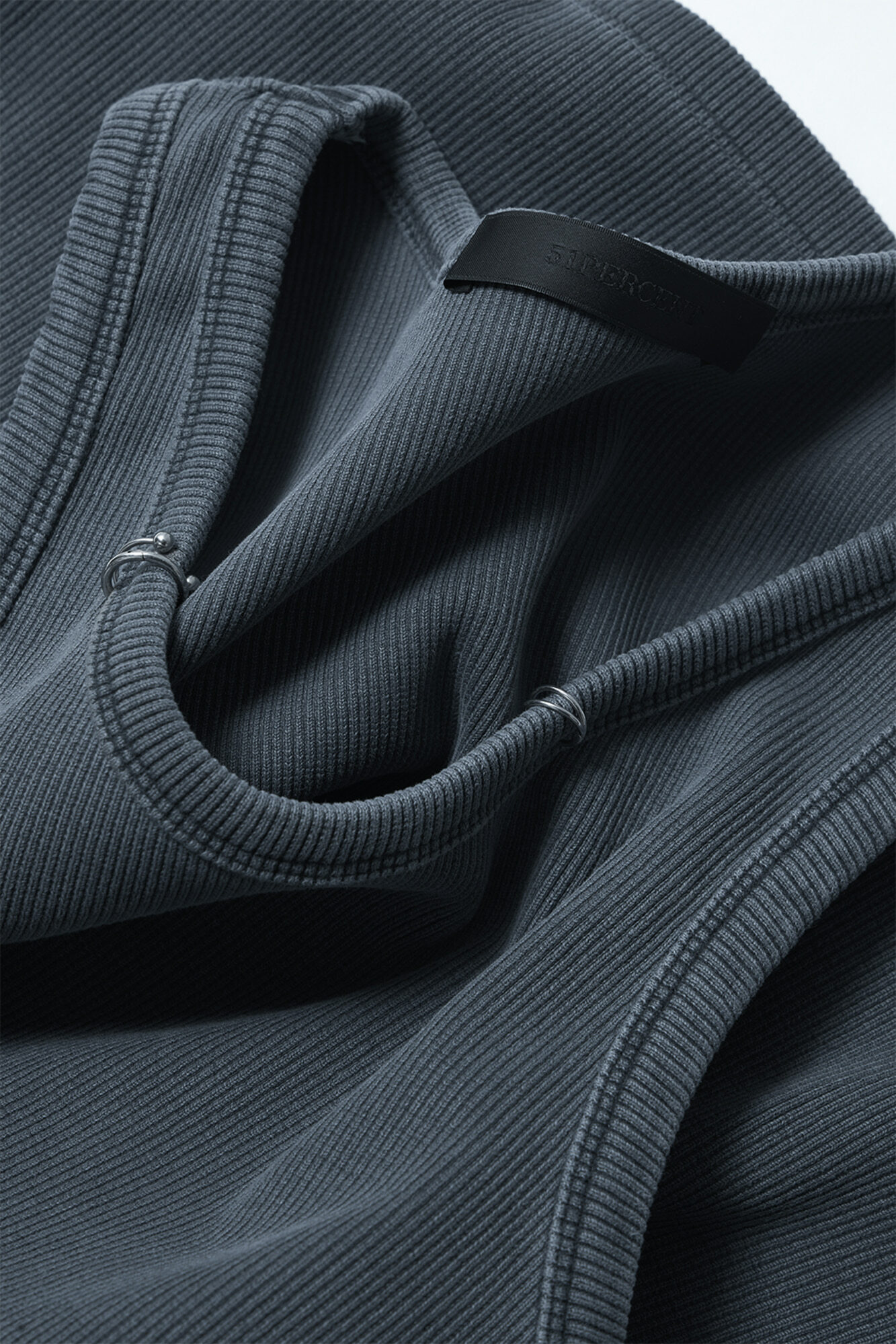 金屬環領背心 - 水洗灰