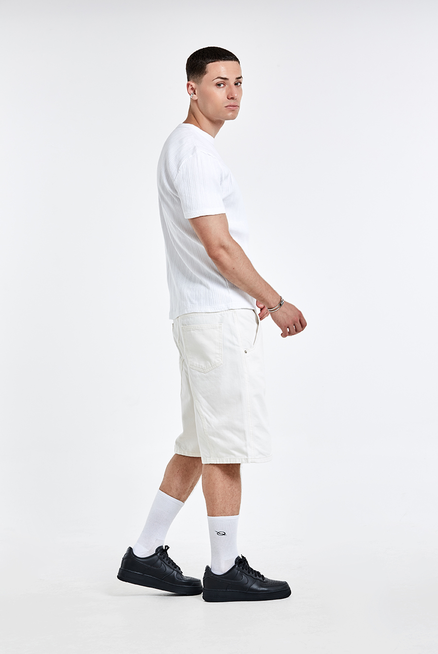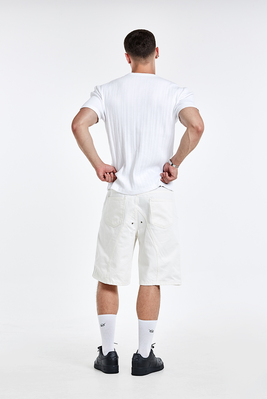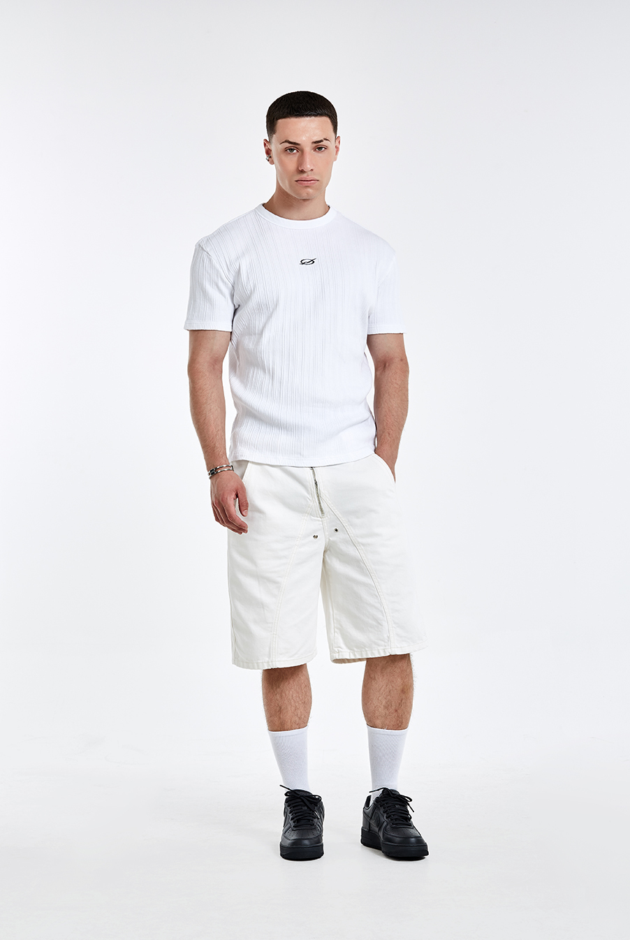 不規則螺紋 Logo 刺繡T恤-白
